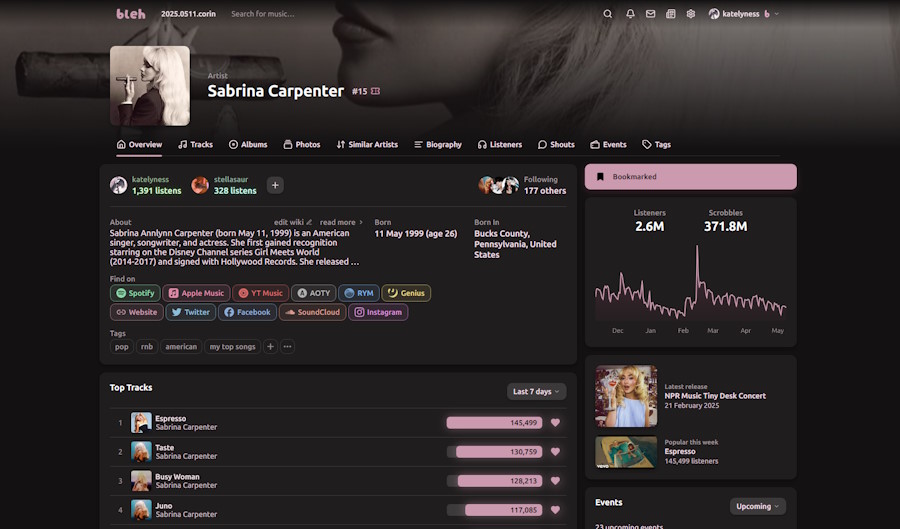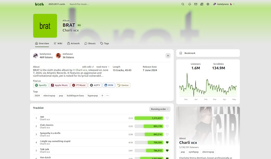 Set a profile shortcut to stay up-to-date with their artist, album, or track scrobbles at a glance.
