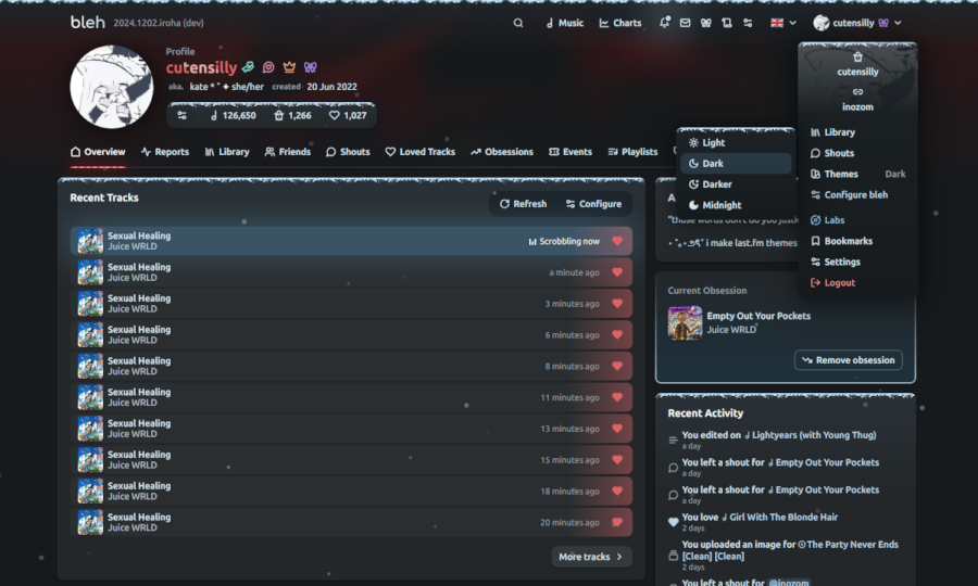 See the return of the 'recent activity' panel, a long lost Last.fm feature to show what you have been up to.